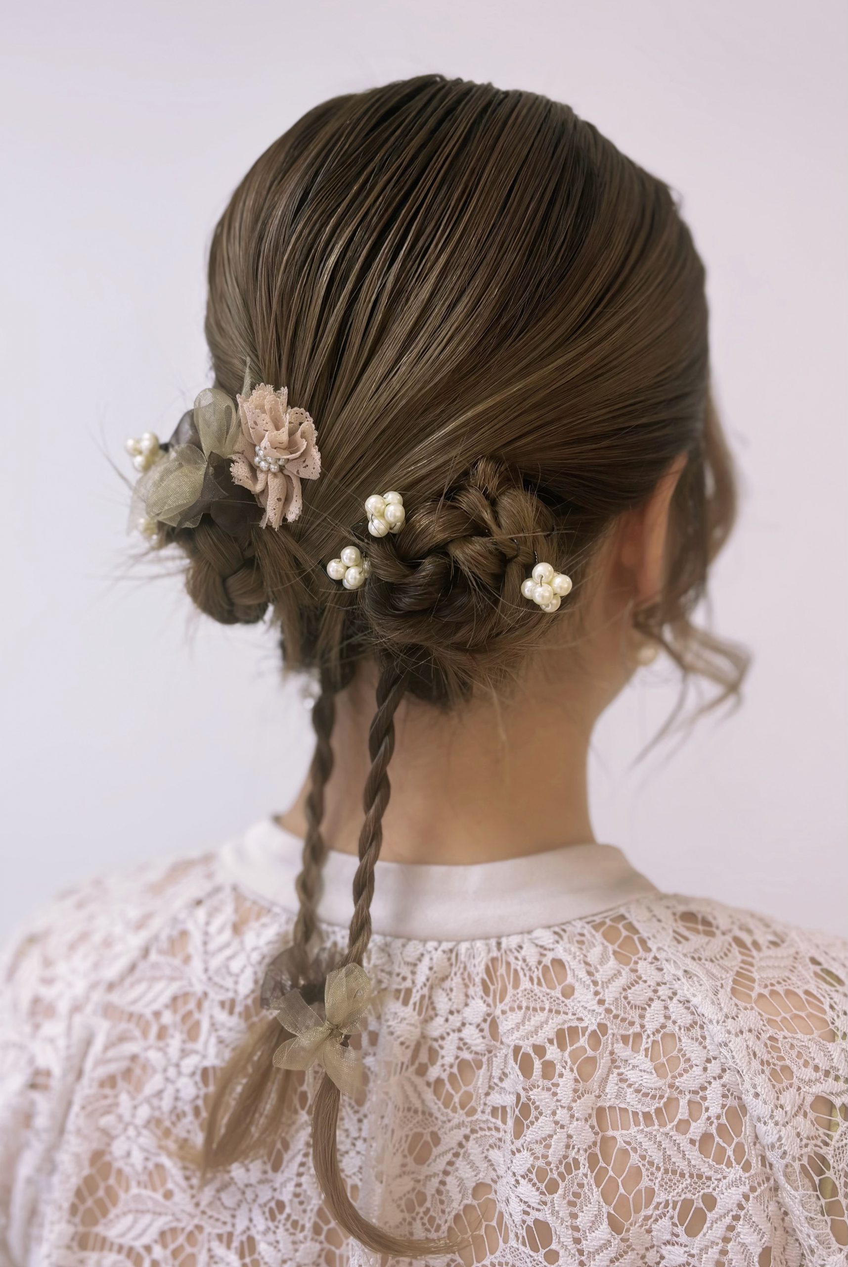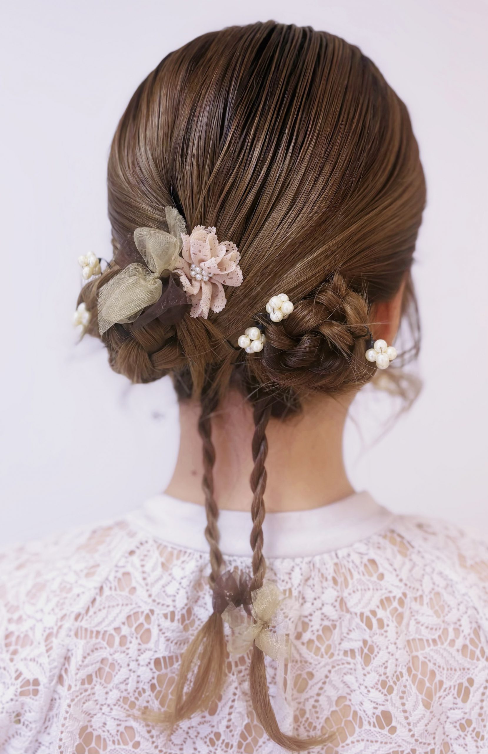 結婚式列席ヘアアレンジ『あみたらし団子ツインスタイル』